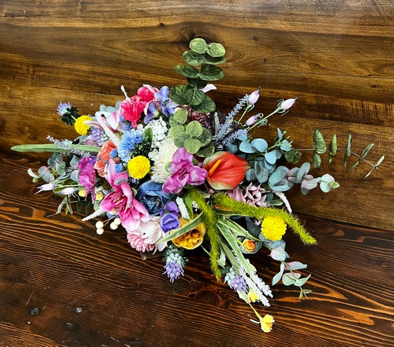 Wildflower Peony Rose One Of A Kind Wedding Bouquet Custom Rainbow Peach Light Blue Pink Yellow Lavender Orange Faux Boho Bridal Bouquet Etsy Uk